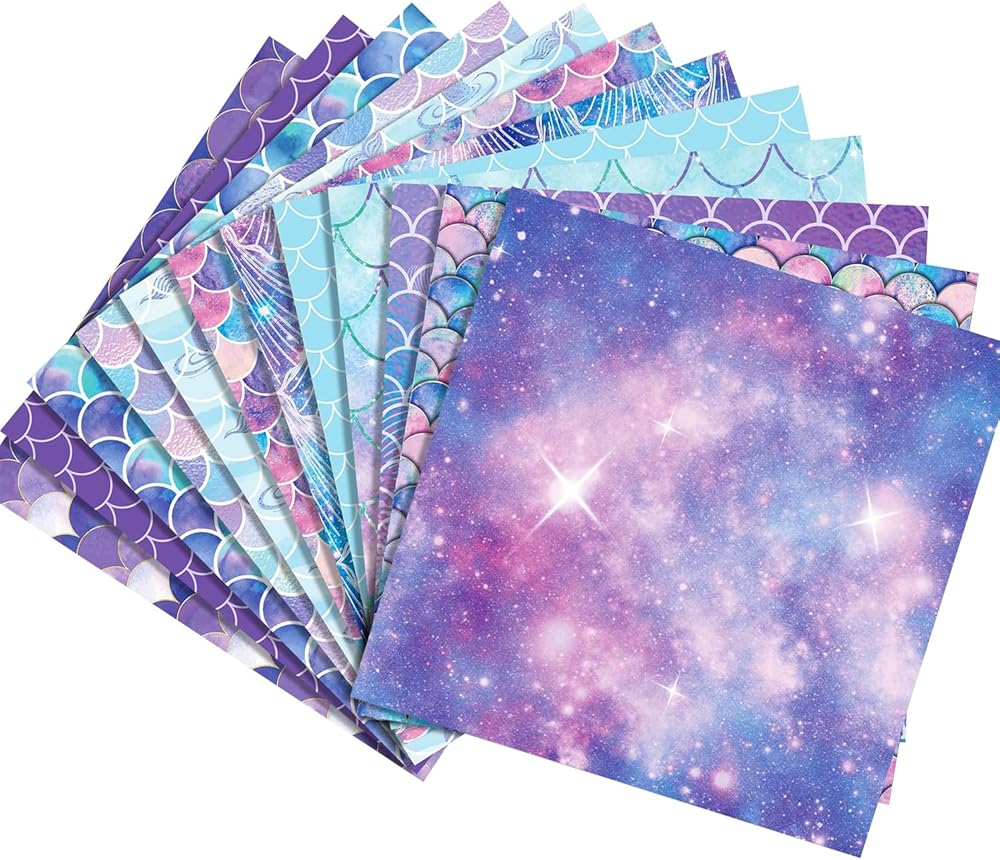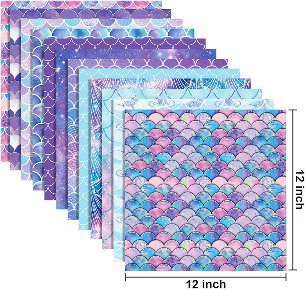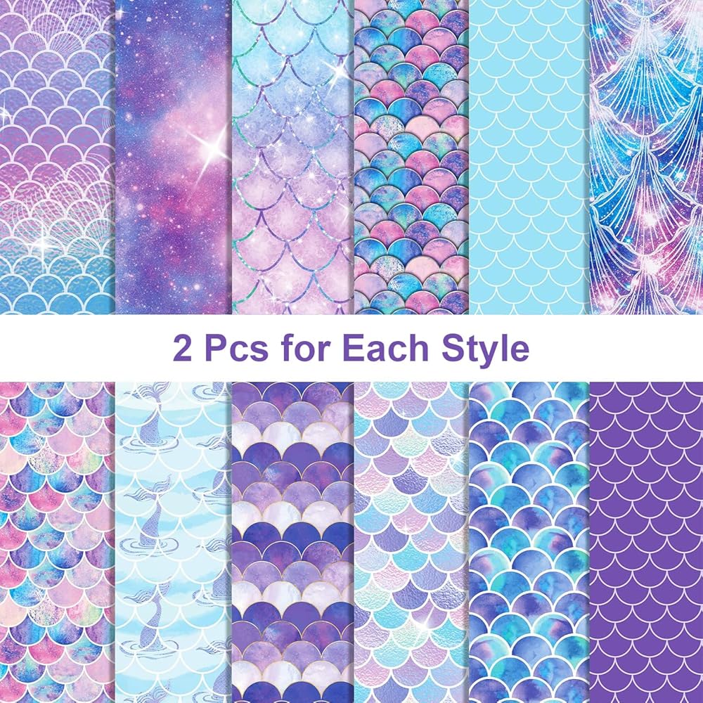 1.Package included: 24 pcs 12 "x 12" mermaid pattern paper with 12 different designs, each style with 2 pieces, which is enough to satisfy your needs. You can share DIY with friends.