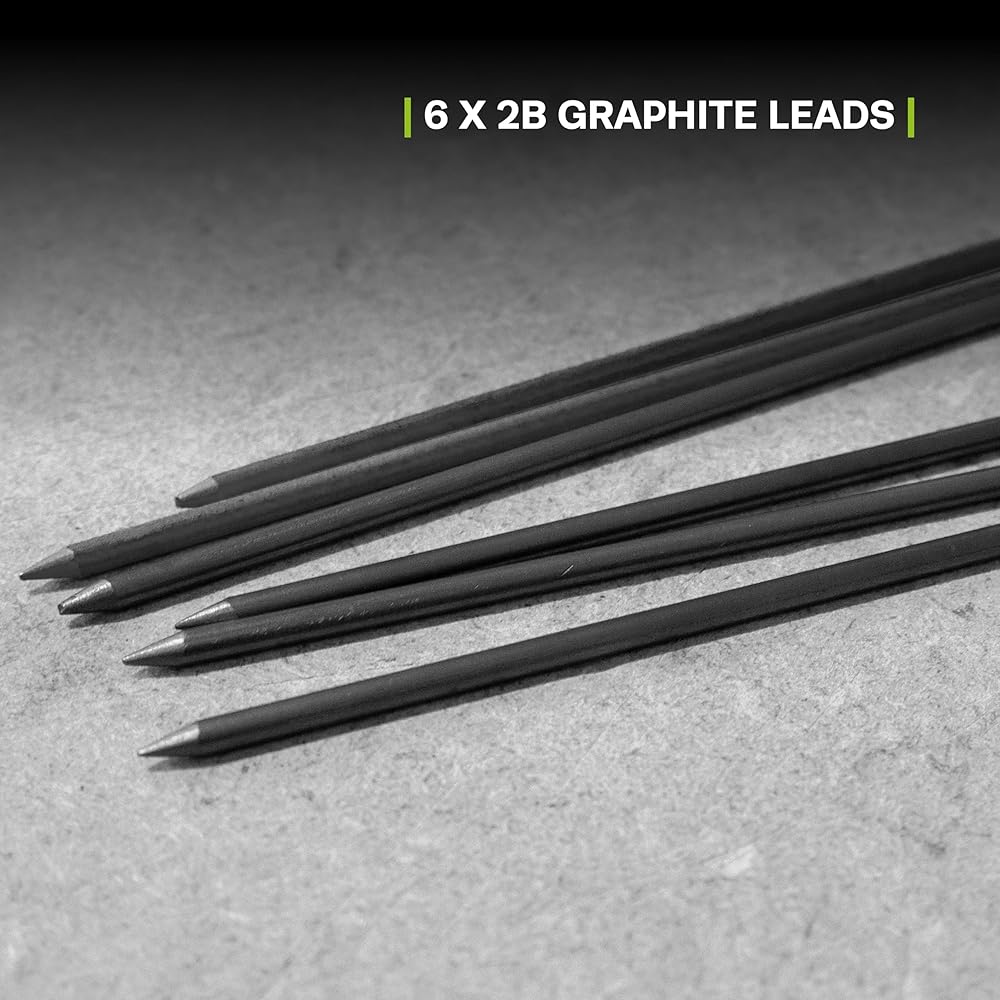 4x GRAPHITE REPLACEMENT LEADS - The Lead dispenser contains 4 replacement 2B Graphite leads which can provide a clear mark on a variety of surfaces.
