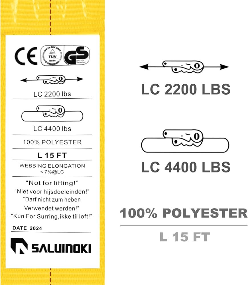 Cargo Straps Strength: Breaking Strength 10000lbs, Working Load 2200lbs.