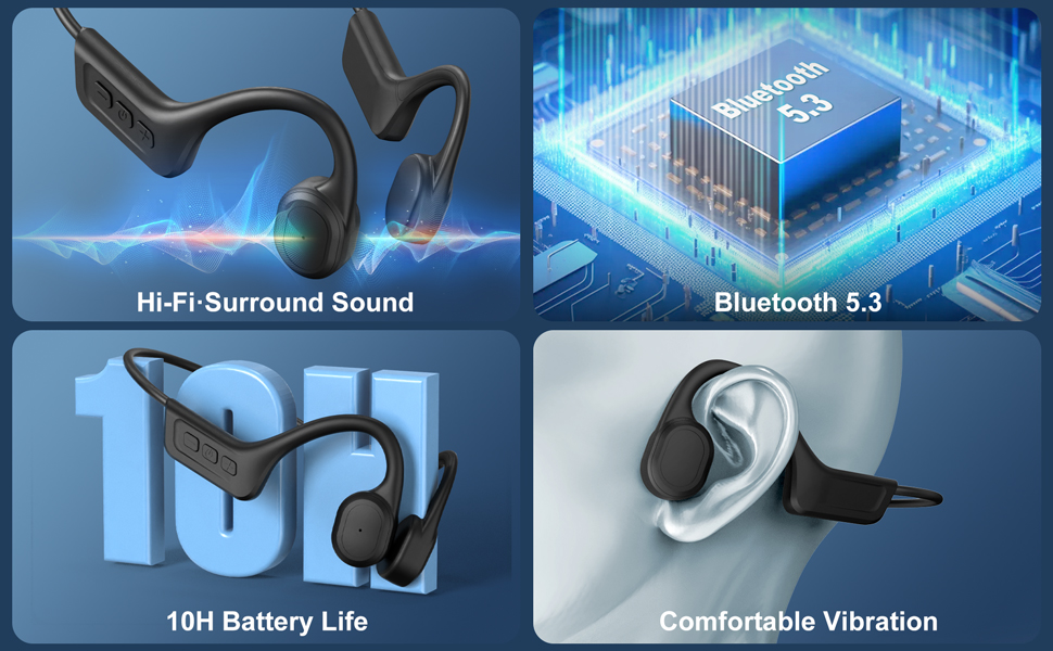 【BT 5.3 Support Multi devices Stable connection 】 Bone conduction headphones with the latest version 5.3 of Bluetooth chip,transmission range up to 13 meters, it quickly pair with all BT devices such as smartphones, tablets, smart watches and more, allows you listen to music hands-free at any time, supports connecting multiple devices