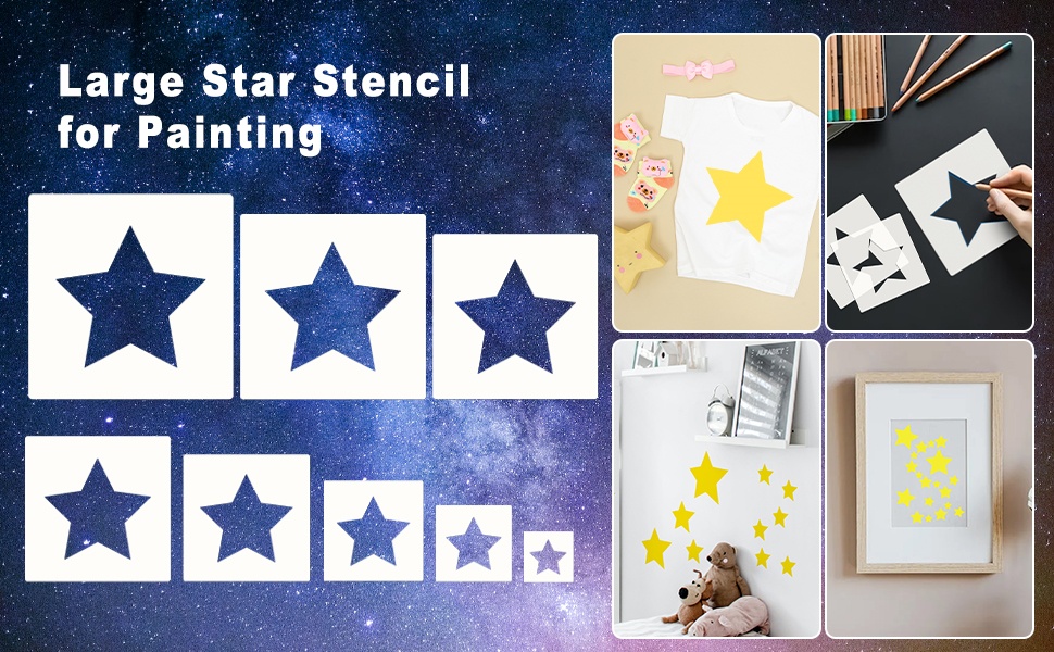 WIDE APPLICATION The star stencils can be applied to a variety of surfaces, such as wood, wall, fabric, ceramic, metal, etc., to meet your creative needs and inspire imagination and creativity; perfect as a gift for family or friends.