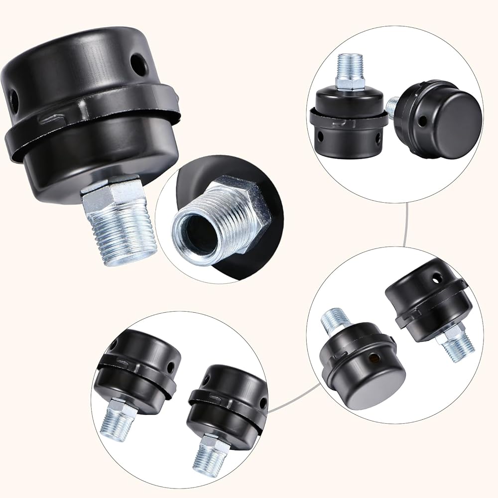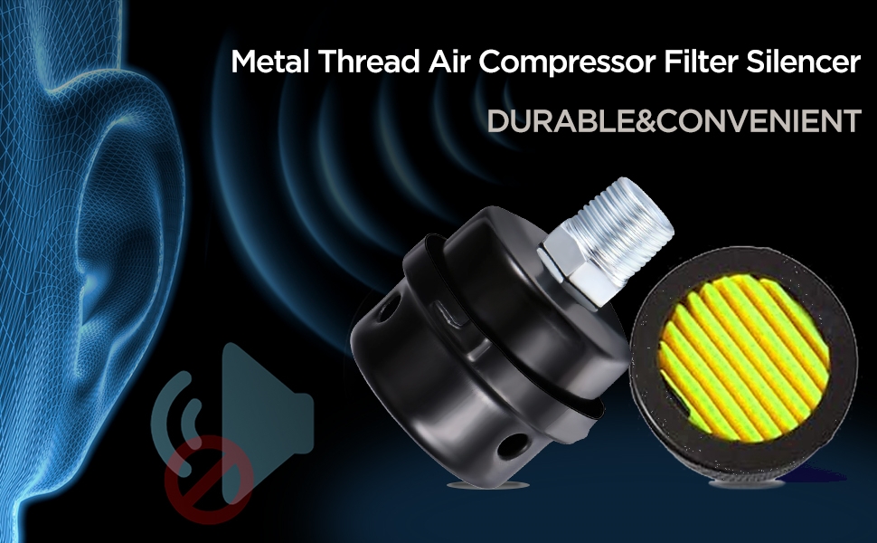 ✔ HIGH QUALITY MATERIAL: The shell of air compressor filter is made of coated metal for greater durability and longer life and the metal shell is thickened thread. You can use this air compressor intake filter silencer to reduce noise