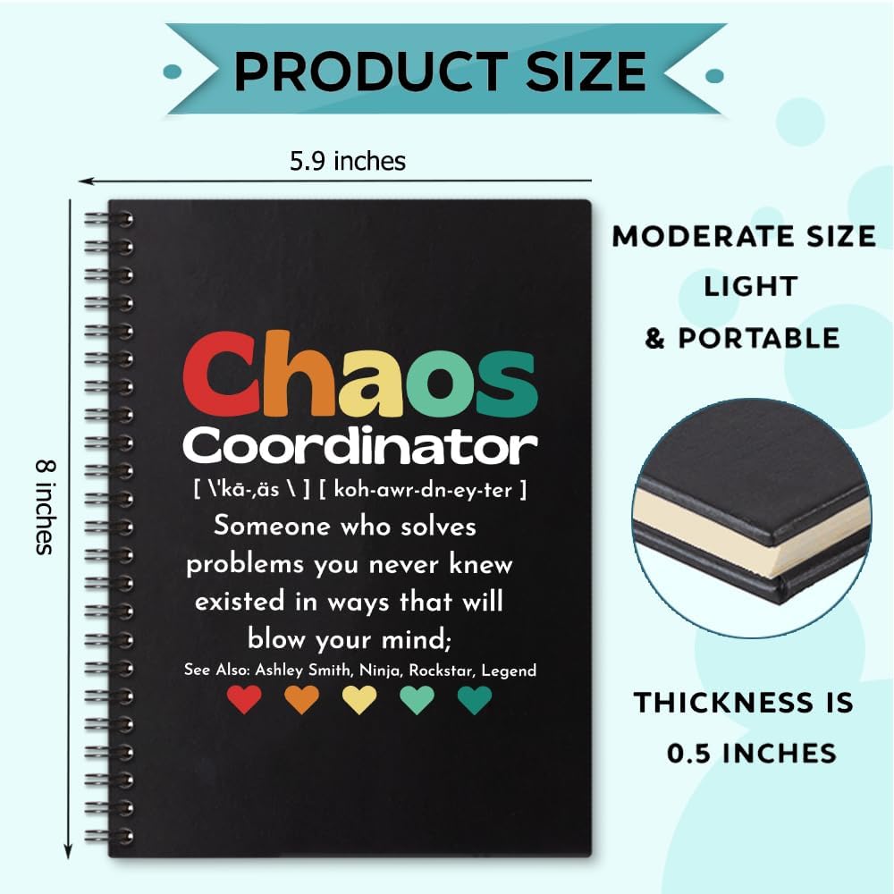Chaos Coordinator 160 Blank Pages Spiral Notebook, Appreciation Gift for Boss Lady Manager Supervisor Secretary Teacher Nurse Mom, Farewell Gift for Coworker, Chaos Coordinator Gifts for Women