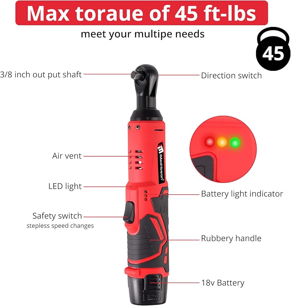 مجموعة مفاتيح سقاطة كهربائية لاسلكية 3/8 بوصة من iMeshbean، مجموعة مفاتيح سقاطة كهربائية 12 فولت 230 دورة في الدقيقة، محرك سقاطة كهربائي متغير السرعة مع 7 مقابس، بطارية 1.5 أمبير في الساعة ومجموعة شاحن سريع 60 دقيقة