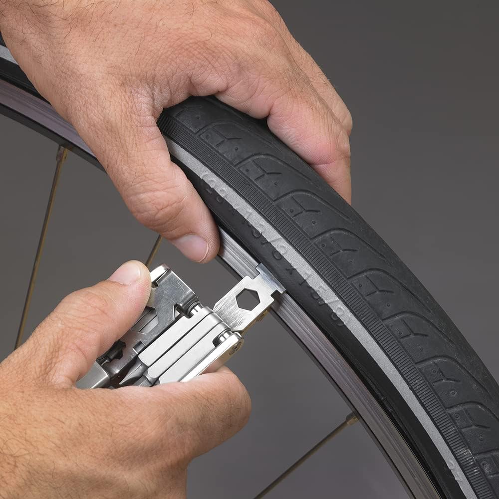 These Swiss+Tech Bicycle Multi-Tool Kits are constructed of high-quality stainless steel and fit into compact aluminum frames that can be kept in a toolbox or in a bicycle pannier. Each are equipped with heavy-duty compact and rugged Palm-Grip Tools. The Rx20 is a cycling tool for on-the-road repairs or at home maintenance. It is a comprehensive and compact tool for bike enthusiasts that features twenty heavy-duty tools that offer durability and dependability with every use. The must-have tools included with this Swiss+Tech Bicycle Multi-Tool include all of the following: no. 2 Phillips driver, flat head driver, 2mm hex driver, 2.5mm hex driver, 3mm hex driver, 4mm hex driver, 5mm hex driver, 6mm hex driver, 8mm hex driver, T25 star driver, 8mm wrench, 10mm wrench, 3.5mm spoke wrench, 3.8mm spoke wrench, 4mm spoke wrench, 6mm Mavic spoke wrench, 10mm Mavic spoke wrench, chain tool, tire lever 1 and tire lever 2.