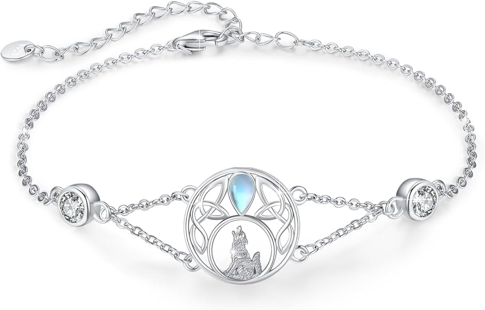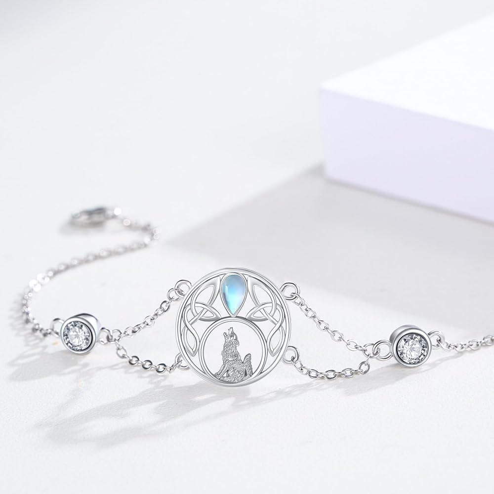 【Charm Wolf Jewelry Gift】Moonstone wolf adjustable bracelet howling wolf jewelry for women comes with an elegant jewelry gift box. Moonstone wolf bracelet animal jewelry for girls, mom, wife, daughter, sisters, niece, girlfriend, on Birthdays, Valentine's Day, Mother's Day, Christmas, Halloween, Graduation, Thanksgiving Day, Anniversary, etc.