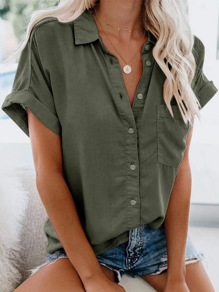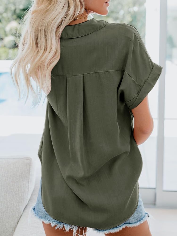 Versatile and Stylish: These casual summer tops for women feature solid colors and a loose-fit design, perfect for various occasions. The stylish collared look and convenient pocket add a touch of sophistication to your outfit.