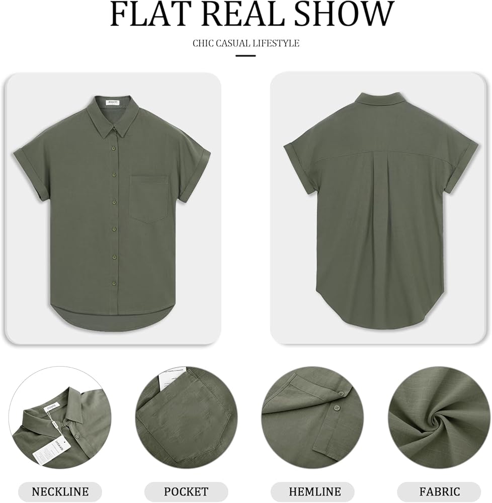 Elevate Your Summer Style: JEKAOYI presents these chic women's blouses & button-down shirt, crafted from premium 100% cotton for ultimate comfort and softness, making it a must-have for your summer wardrobe.