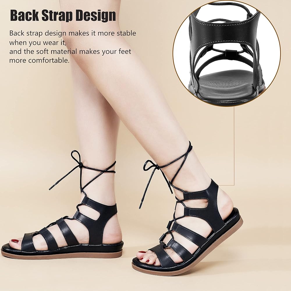 Gladiator Strap Style: The women's gladiator sandals feature soft and adjustable cross straps, making the flat sandals easy to put on and take off, also can adapt to your feet width at ease, provide sufficient support.