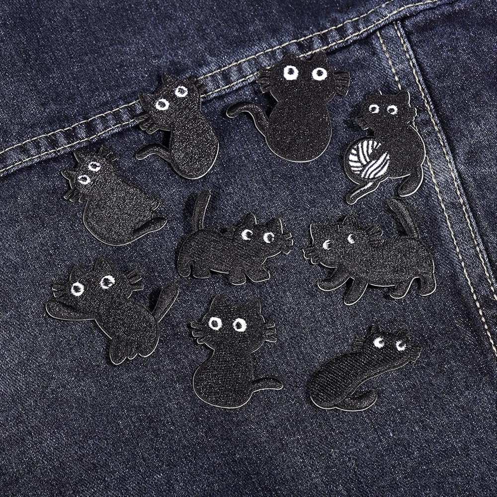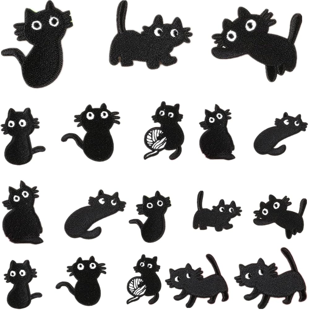 Black Cat Embroidered Patches for Clothing Naughty Cat Sewing Repair Patches Embroidery Appliques for Teen/Kids,18 Pcs Iron on Patches for Backpacks Jeans Hats Jackets