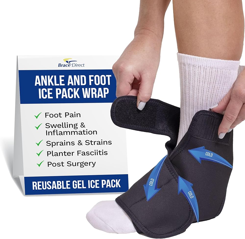 Ankle and Foot Reusable Gel Ice Pack Wrap for Achilles Tendonitis, Plantar Fasciitis, Sprains, Swelling, Post Surgery Relief by Brace Direct (S/M: US Shoe Men ≤10, Women ≤11)