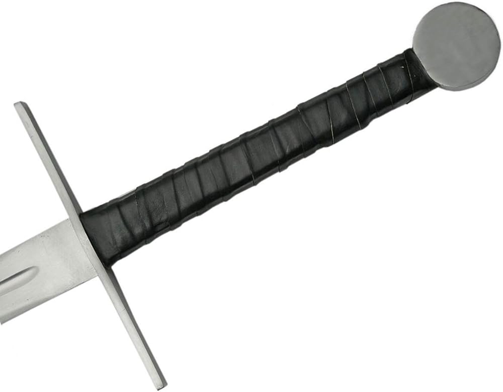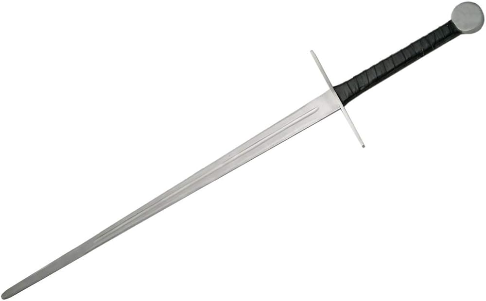 SZCO 48" Hand and a Half Medieval Sword – Full Tang Steel Sword with Leather Wrapped Handle, Steel Guard & Pommel, Black Scabbard for Cosplay & Display
