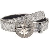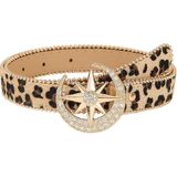 【Feature】Alloy metal and polyester and PU leather material waistband, star shape buckle, hook closure.