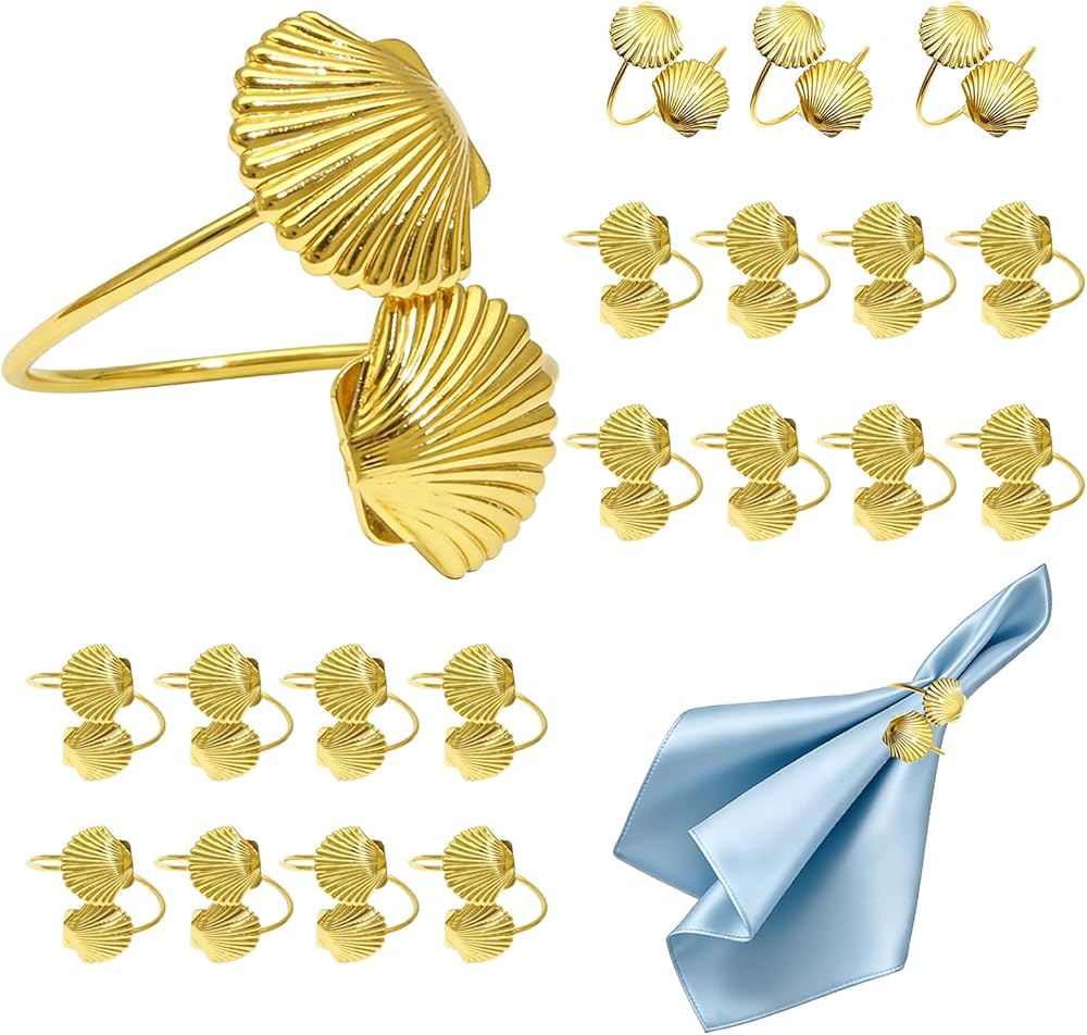 Gold Shell Napkin Rings Set of 20 Coastal Seashell Napkin Ring Holder for Beach Wedding Pool Party Decor,Beach Napkin Rings for Hawaii Holiday Brithday Family Gatherings Dinner Table Setting