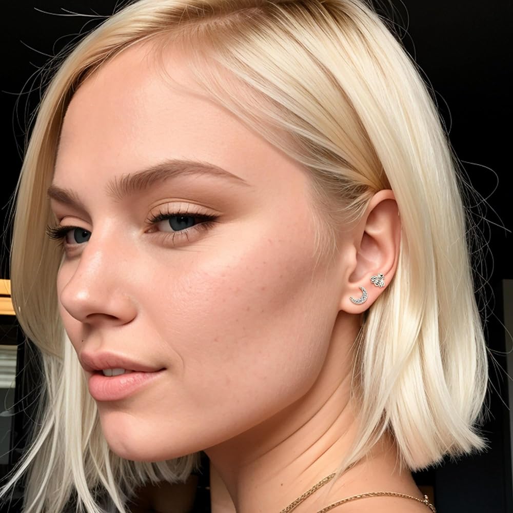 مجموعة أقراط الغضروف - طلب واحد يمكنك الحصول على 12 قطعة من أقراط الغضروف المصنوعة من الفولاذ المقاوم للصدأ للرجال والنساء بأنماط مختلفة، بما في ذلك أقراط الفراشة، وأقراط القمر، وأقراط القلب، وأقراط العين الشريرة وأقراط الثعبان، رقيقة وأنيقة، لونين للاختيار من بينها، أضف ألوانًا فريدة وجذابة إلى فستانك اليومي.