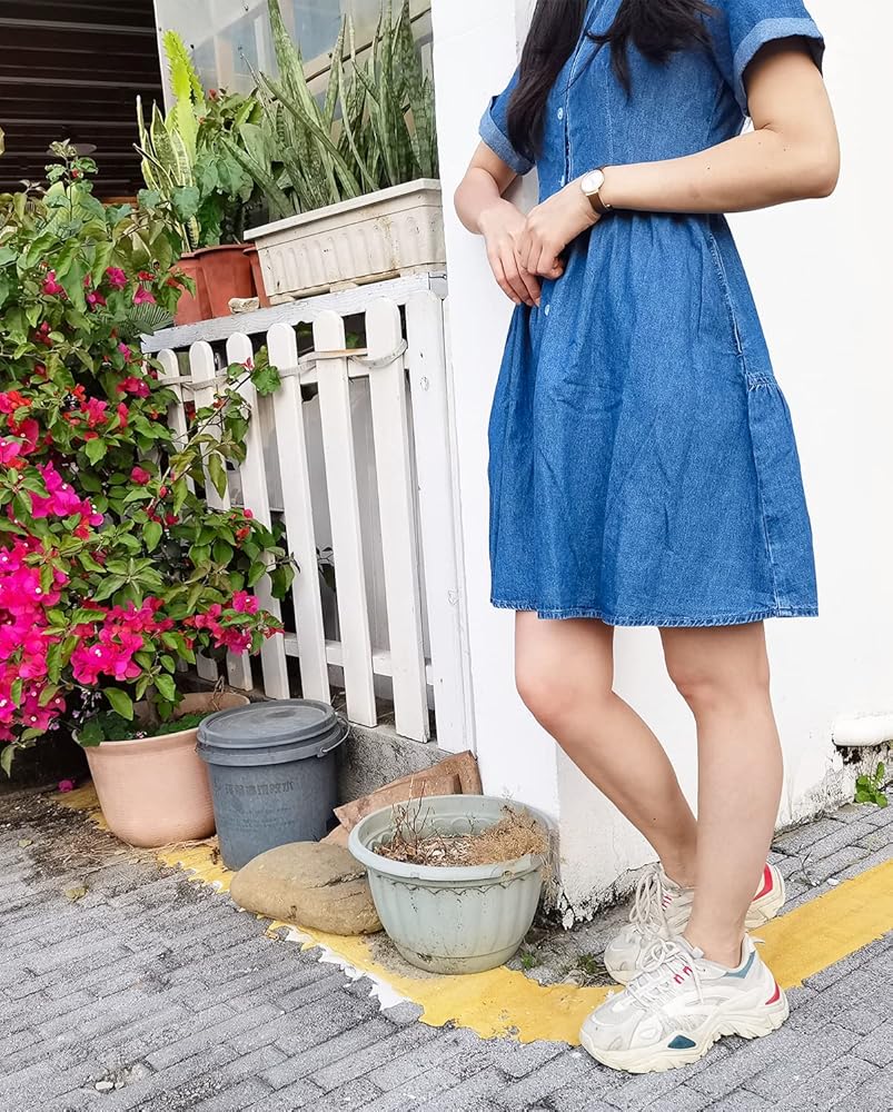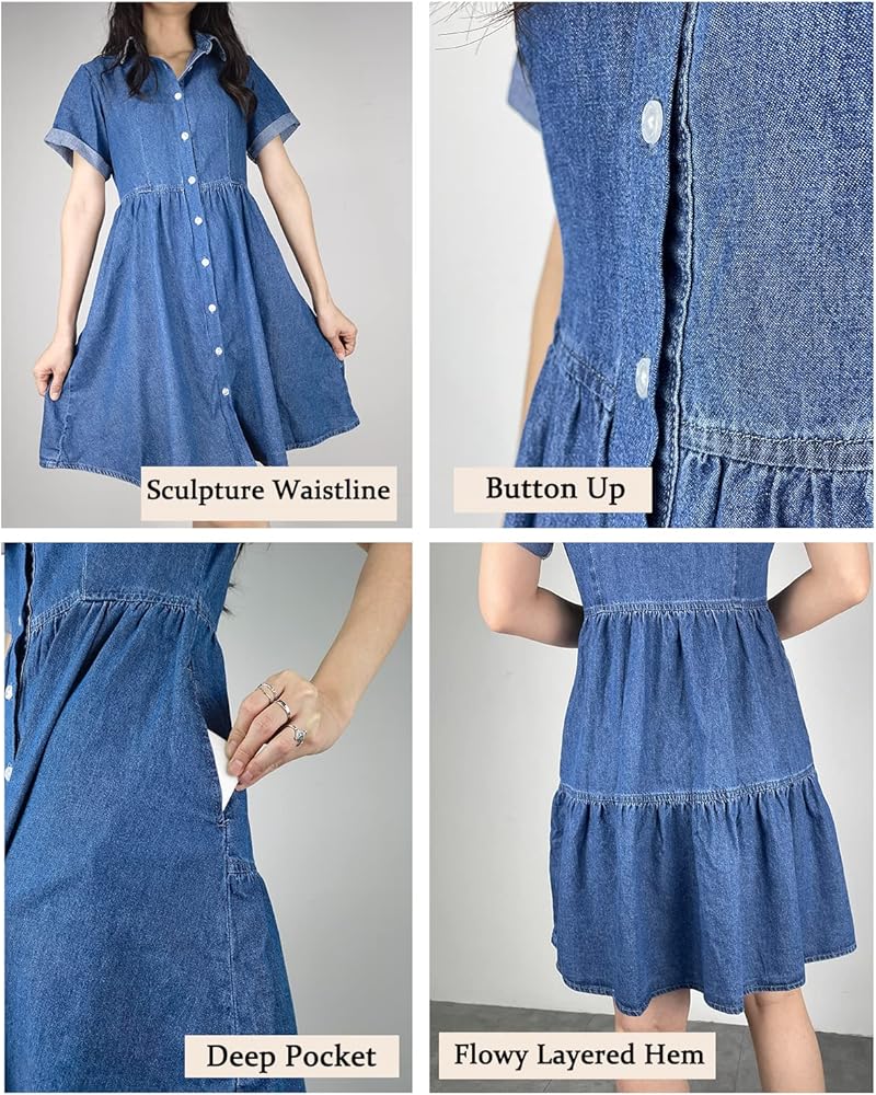【Premium Quality Material】Crafted from 100% cotton lightweight denim fabric, this classic blue denim dress for women offers unparalleled comfort without compromising on style
