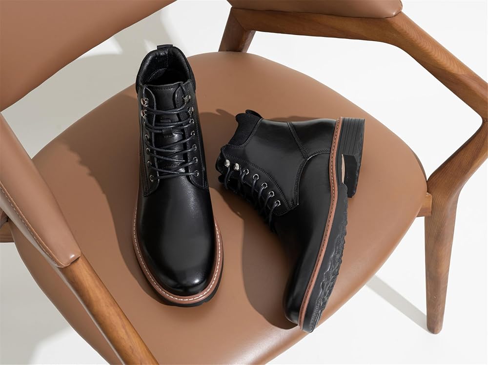 【Lightweight Outsole】 The outsole of the leather boots for men is made of eva, which can fit the sole of the foot and play a comfortable supporting role. This high-quality material can reduce fatigue after a long walk.