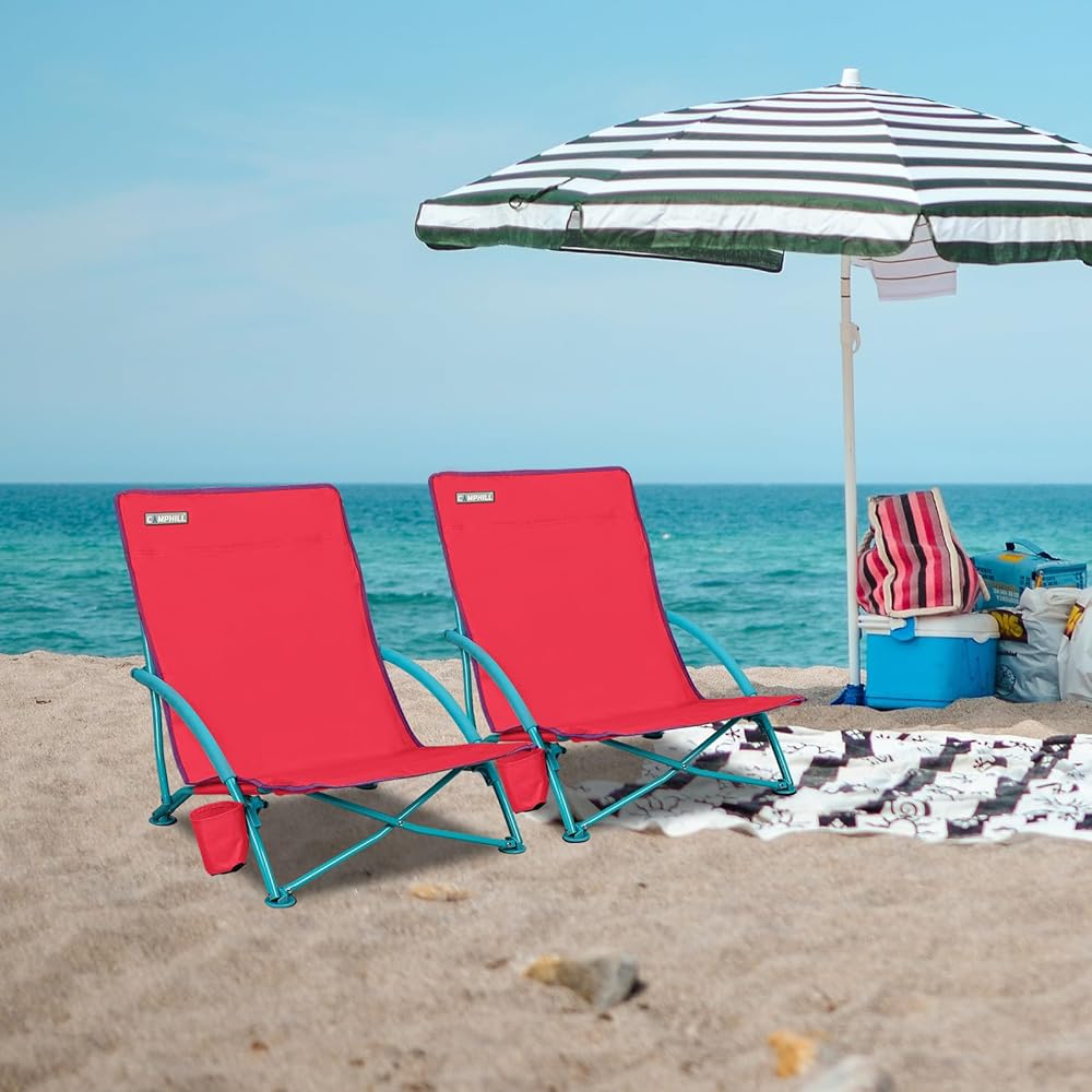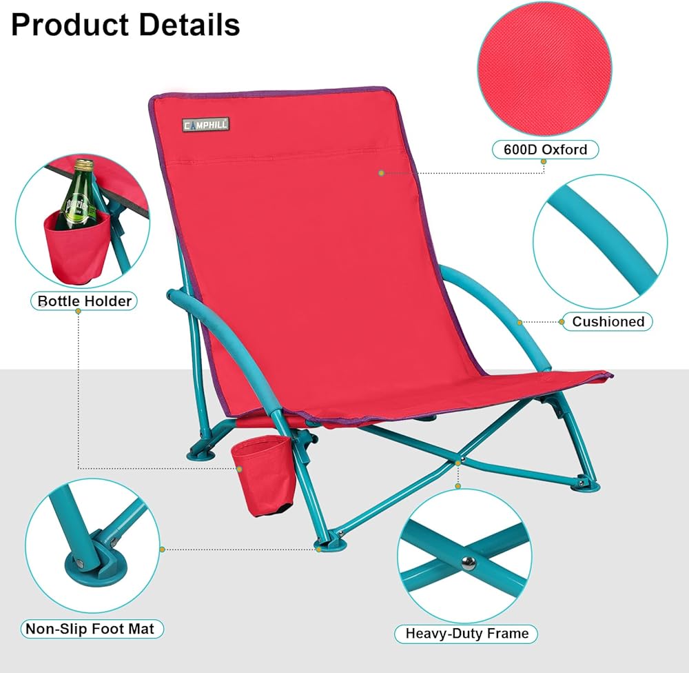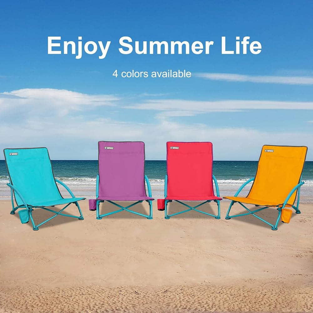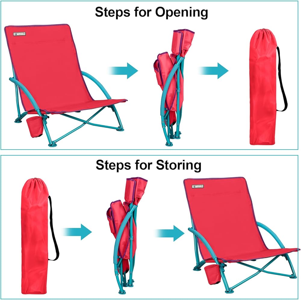Portable Beach Chairs,Low Back Folding Camping Chairs Mesh Back Reclining Chairs Lightweight Outdoor Chairs with Cup Holder for Beach Camping,Beach Tent,Shelter,Outdoor