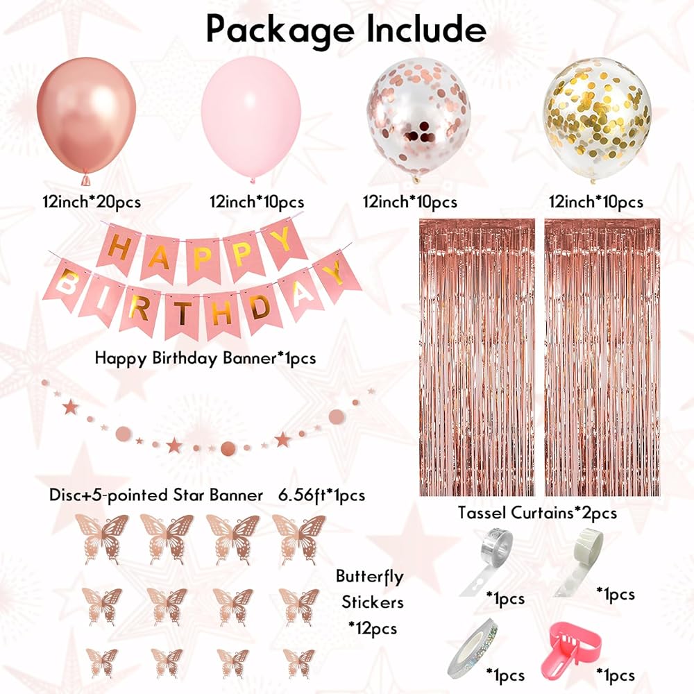 Suitable for for 21st birthday party, rose gold birthday decorations, bachelorette party, girl baby shower decorations, butterfly themed party decorations, weddings, anniversaries, princess party, etc.