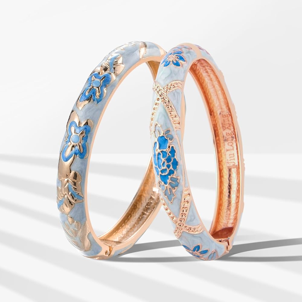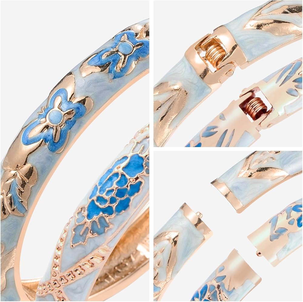 wynameleri Cloisonne Bracelet Butterfly and Flower Enamel Cuff Bangles Hinged Bracelets Jewelry Set for Women Gift Box 55A102