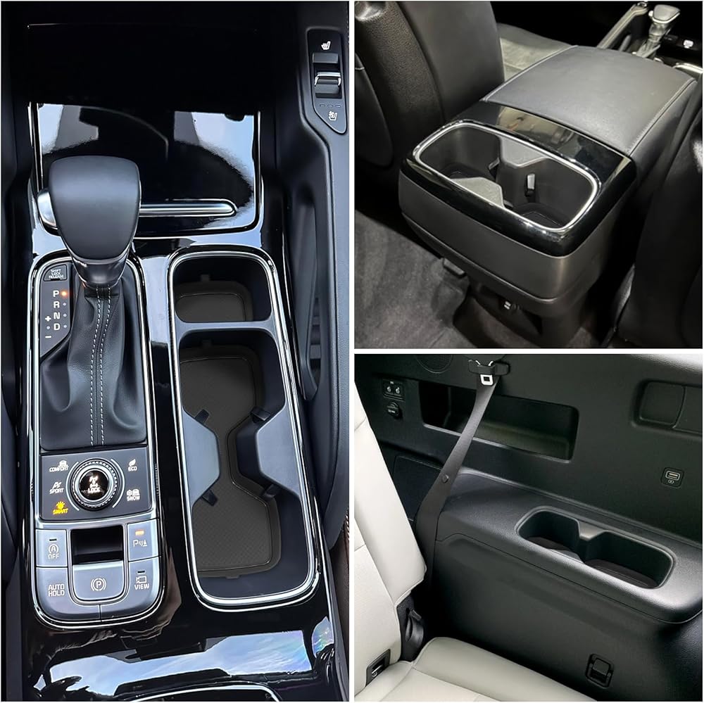 Cup Holder Coaster for Kia Telluride Accessories 2020 2021 2022 2023 2024 2025 Silicone Cup Holder Insert Mat Non-Slip Center Console Pad Car Interior Accessories Decoration (Black Trim,6-pcs kit)