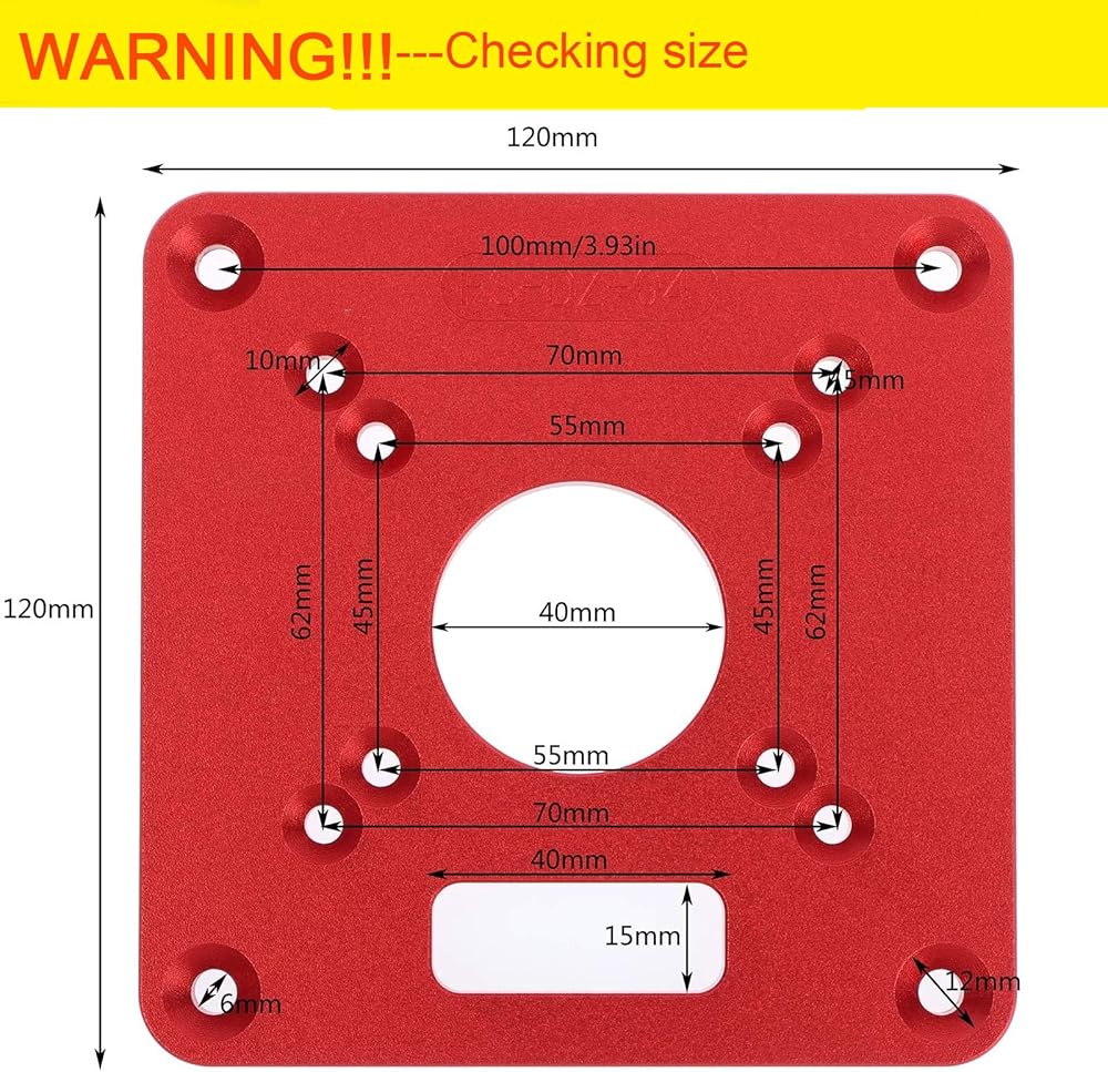 Material--Router plate insert made of red aluminum alloy,not easy to rust and long service life, wood trimming machine.(CHECKING SIZE!!!)