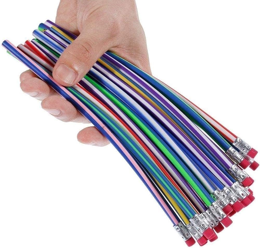 5Pcs colorful Stripe Soft Pencil Flexible Stationery Eraser Soft Writing Bendy Stu G9z8 Pencil Pens With Flexible,Wooden Lead Pencils,Not Easy to Break Office Products,Writing and Correction Supplies