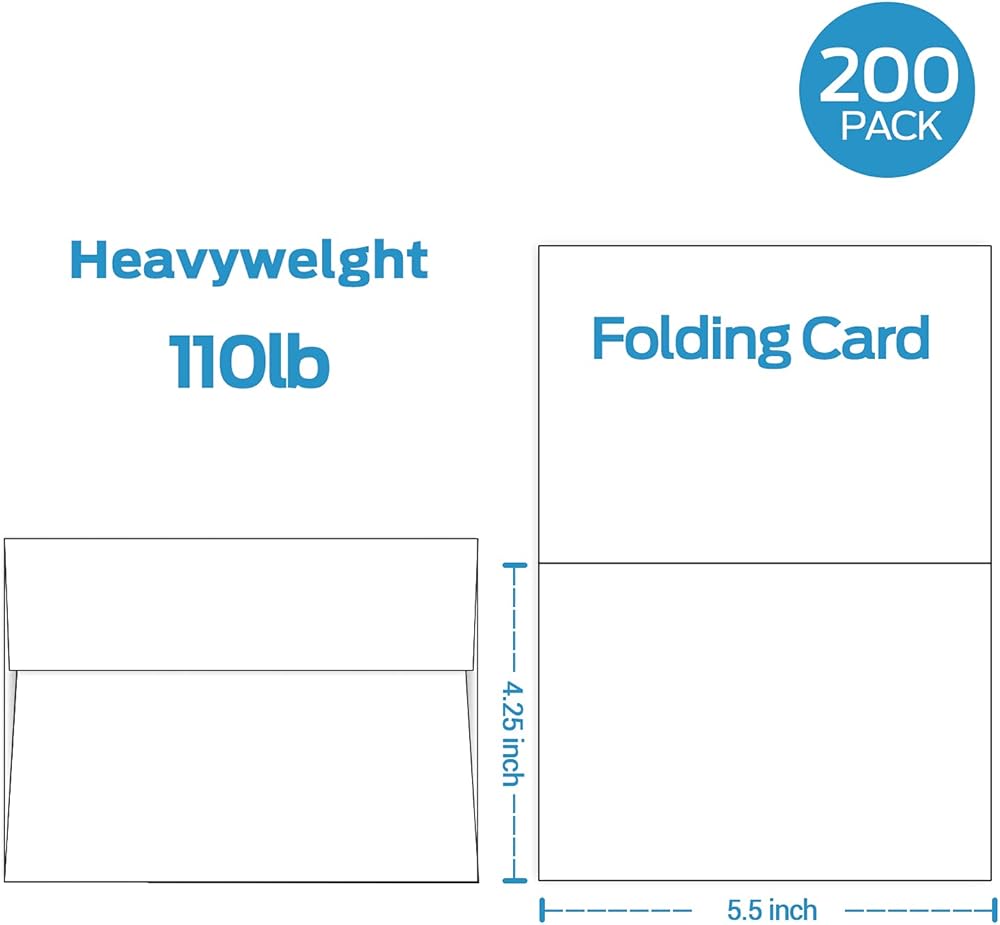 Ohuhu Blank White Cards and Envelopes 200 Pack - 4.25" x 5.5" Heavyweight Folded Cardstock and A2 Envelopes for DIY Greeting Cards Wedding Birthday Invitations Baby Shower Thank You Cards and More