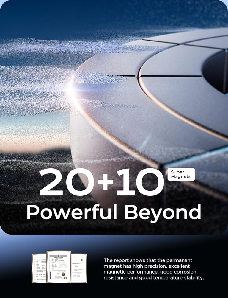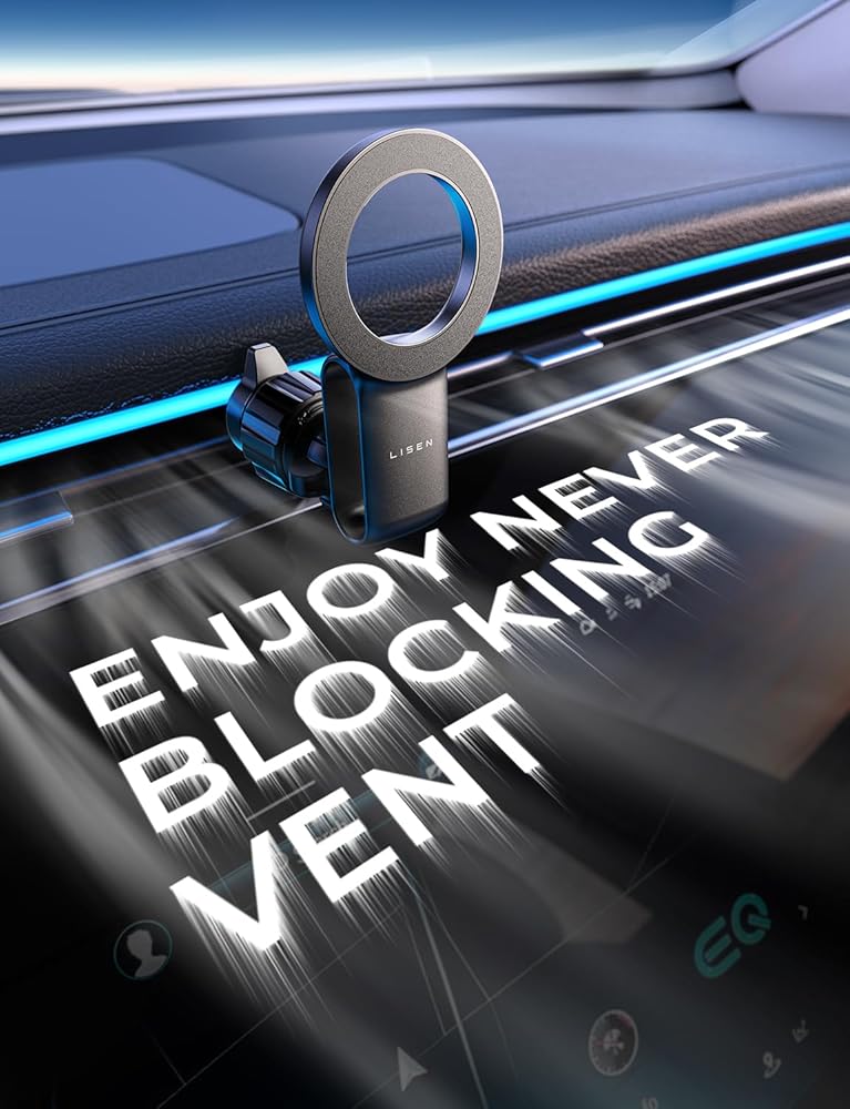【30 Upgraded Magnets】2023 Upgraded Magnet Layout - 60.8% Power Boost! LISEN car mount for MagSafe features 30 upgraded N55 super magnets built-in, capable of securely holding items weighing up to 6.4 lbs. The exceptionally powerful magnets ensure a firm grip on your cell phones, making it worry-free even during strong braking, sharp turns, or rough road conditions.