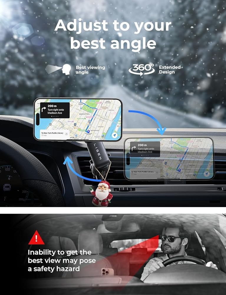 【Easy to Place & Adjust】Far more convenient than clamp arm car phone mount holders, the LISEN magnetic phone holder for the car allows you to pick and place your phone in just one step. The 360-degree adjustable and rotatable ball joint enables you to easily find the best viewing angle. This magnetic car phone holder frees your hands, ensuring safer calls and GPS navigation.