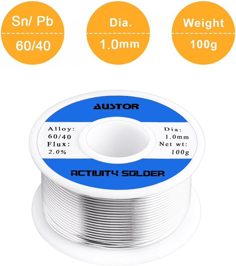 Diameter: 0.8 mm (0.032 in); weight of solder wire: 100g (0.22 lb)