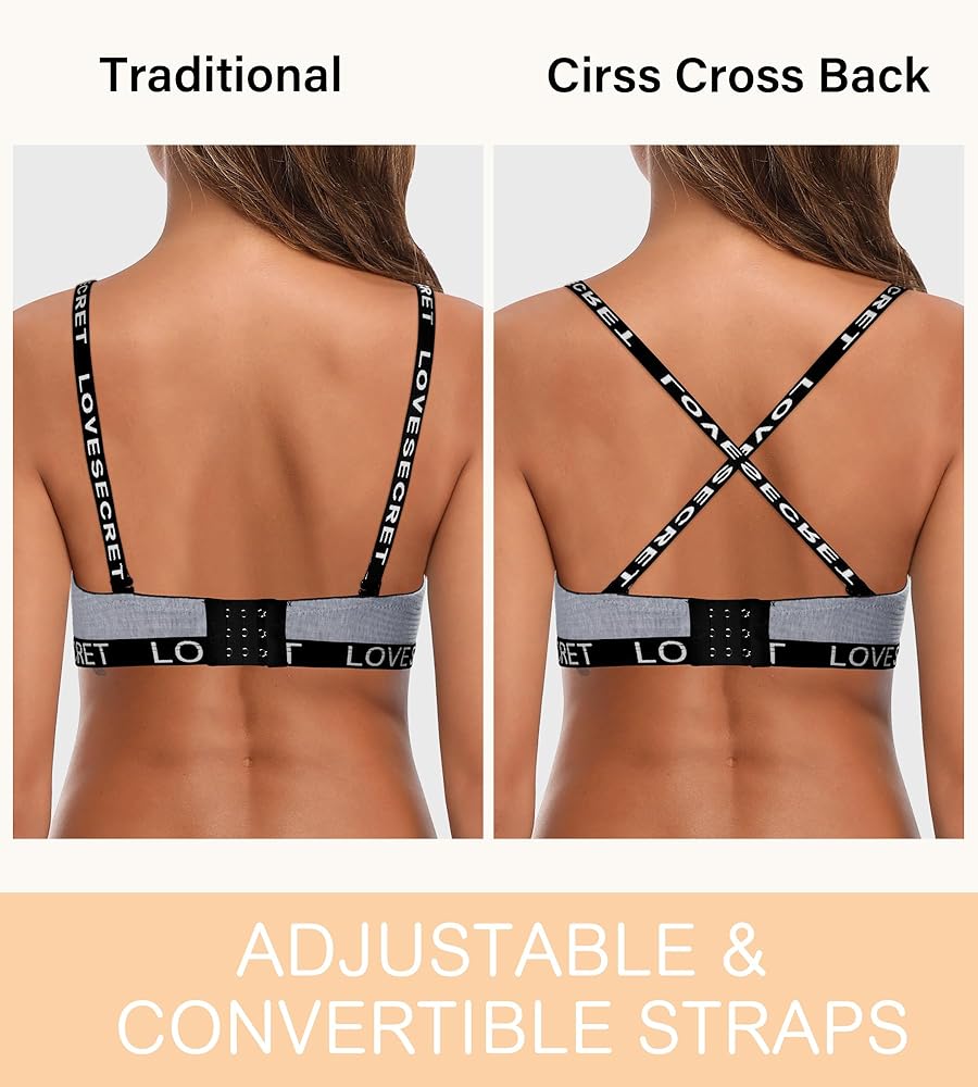 TWO-IN-ONE CONVERTIBLE STRAPS - The plunge bra has elasticized straps that won't pinch your shoulders. Convertible straps that allow you to wear it in a classic style or a cross-back style and hide the straps under sleeveless tops