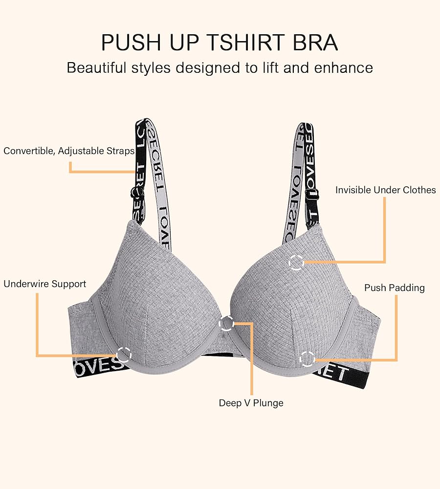 TSHIRT BRA - This cleavage bra features a soft hook-and-eye closure in the back and U-back for no-pinch comfort. The underwire bra for women offers comfortable support and a smooth line for your favorite tees and tops