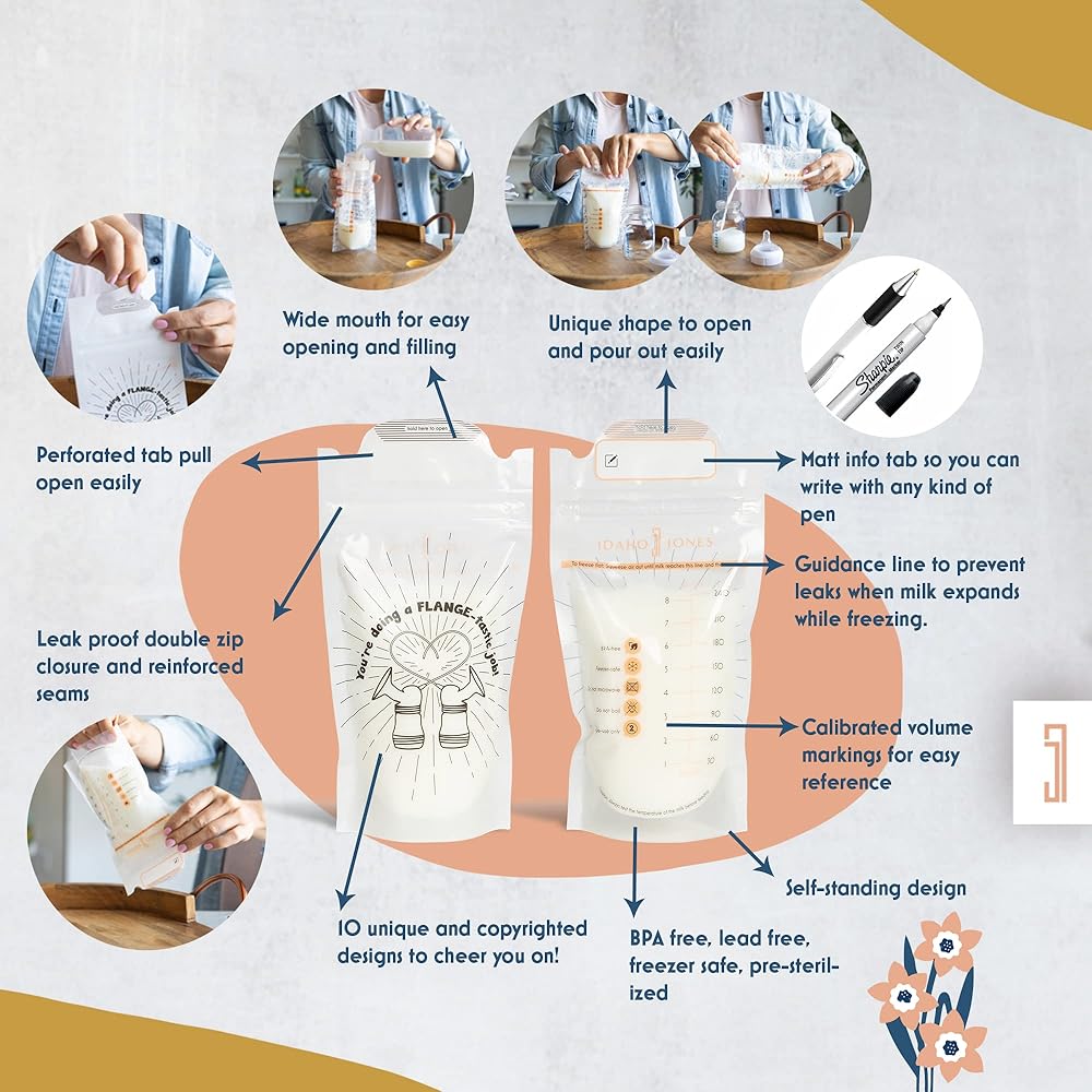 Empowered Pumping Starts Here: If any manufacturing issues show up in your pump bags within the first 12-Months, we will replace or refund immediately. With our breast milk bags, you can pump confidently and bravely for your little one. Because every second counts for an Empowered Pumping Mom! Try Idaho Jones Fun Quotes Milk Bags now and keep doing a flange-tastic job momma!