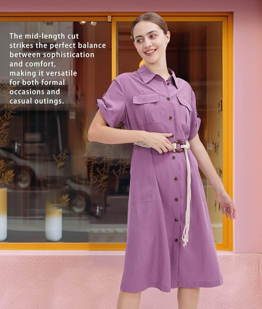 Tips:Please refer to our size chart before purchasing a midi dress. The cotton shirtdress is machine washable.