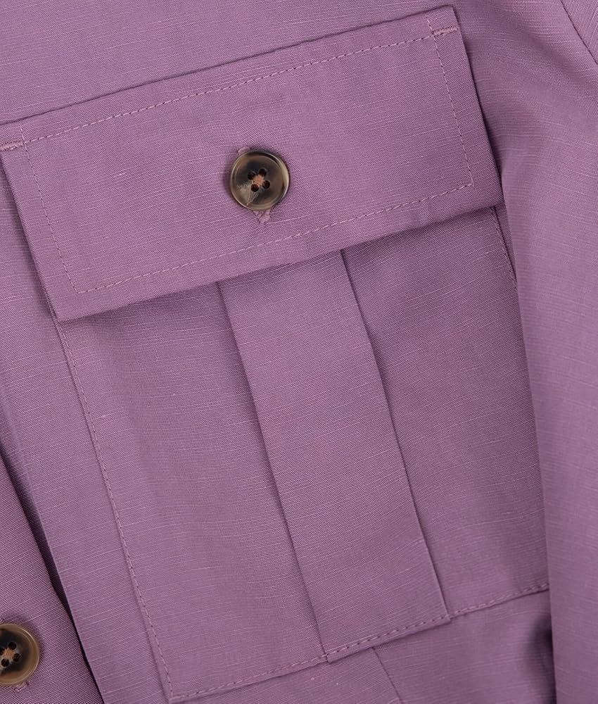 Button up safari style: The short sleeve cargo dress has simple lines and incorporates tooling pockets. At the same time showing feminine elegance and charm.
