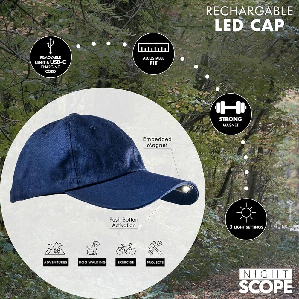 Magnetic Light Attachment: This hat includes a powerful magnetic mechanism that allows for the effortless attachment and detachment of the light to the brim. The strong magnetic connection ensures that the light stays firmly in place during vigorous activities, providing reliable illumination without the hassle of constant adjustments.