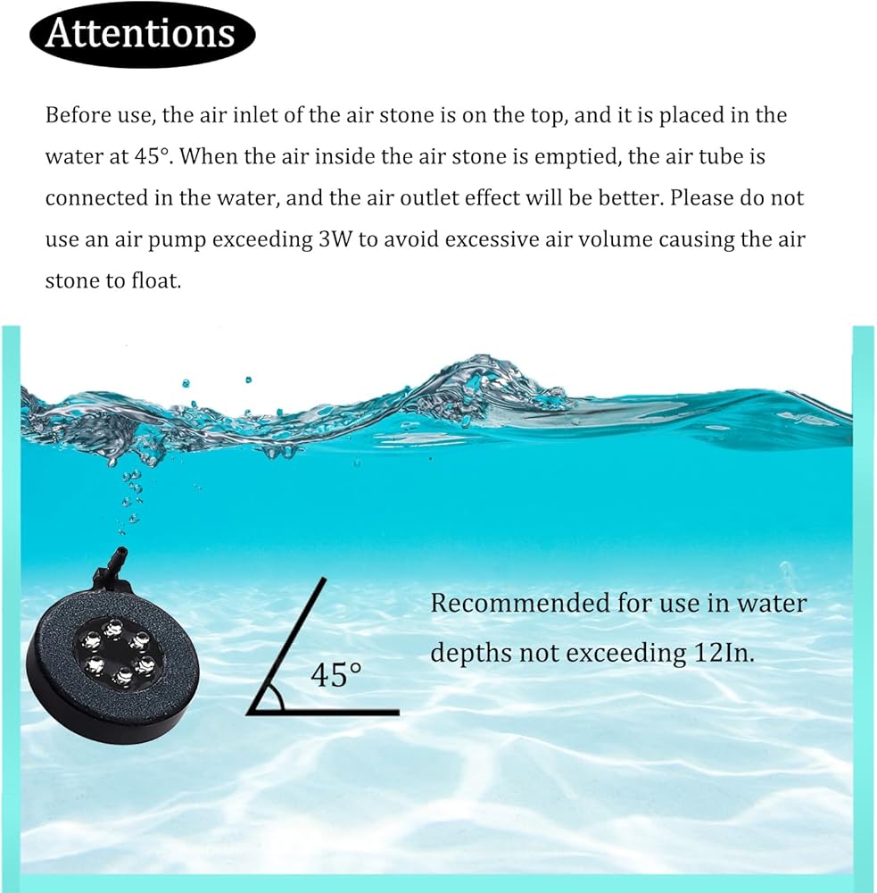 - ❤Attertion: Before use, the air inlet of the air stone is on the top, and it is soaked in water at 45° until the air in the air stone is discharged.