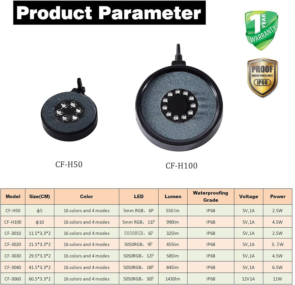 Carefree Fish Aquarium LED Light Air Stone Fish Tank Oxygen Stone Make Bubble 16 Colors and 4 Modes IP68 4In (Air Pumps not Included)