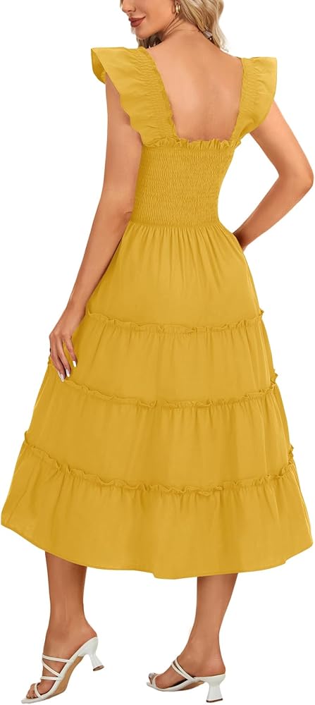 Occasions: Smocked tiered midi dress is appropriate for daily wear, dating, picnic, prom, birthday, school, holiday, travel, vacation, resort, beach.