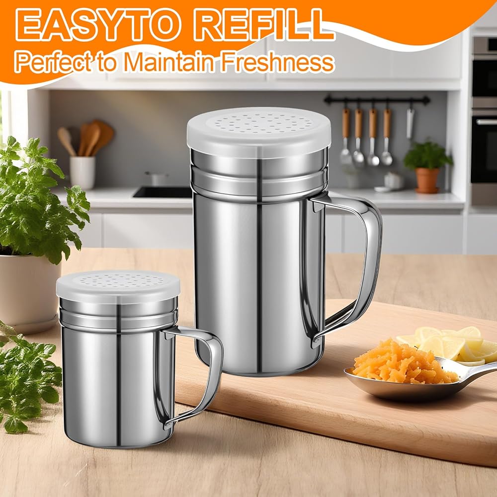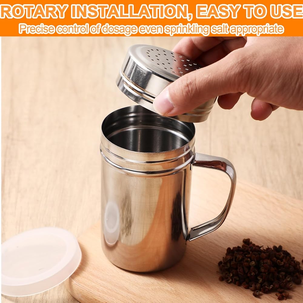 These salt pepper shakers take delight in the generous size, quality material, practical handle, secure lid design, wide application, and aesthetic appeal, and are ideal additions to your kitchen and cooking utensils.