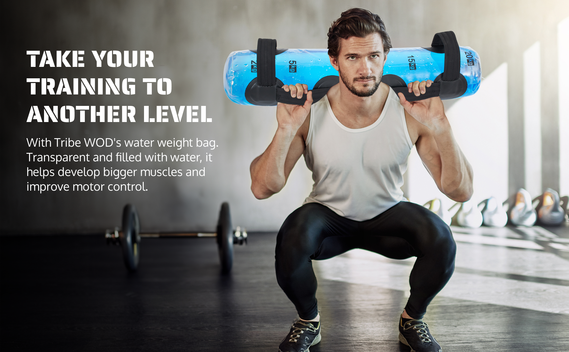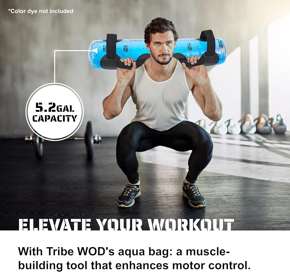 Tribe WOD Aqua Bags - Transparent Water Tidal Tank for Dynamic Training - Portable Stability Fitness Equipment for Core Workouts, Boxing, and Strength Practice - Adjustable 8Hx28.7Lx8W Inch