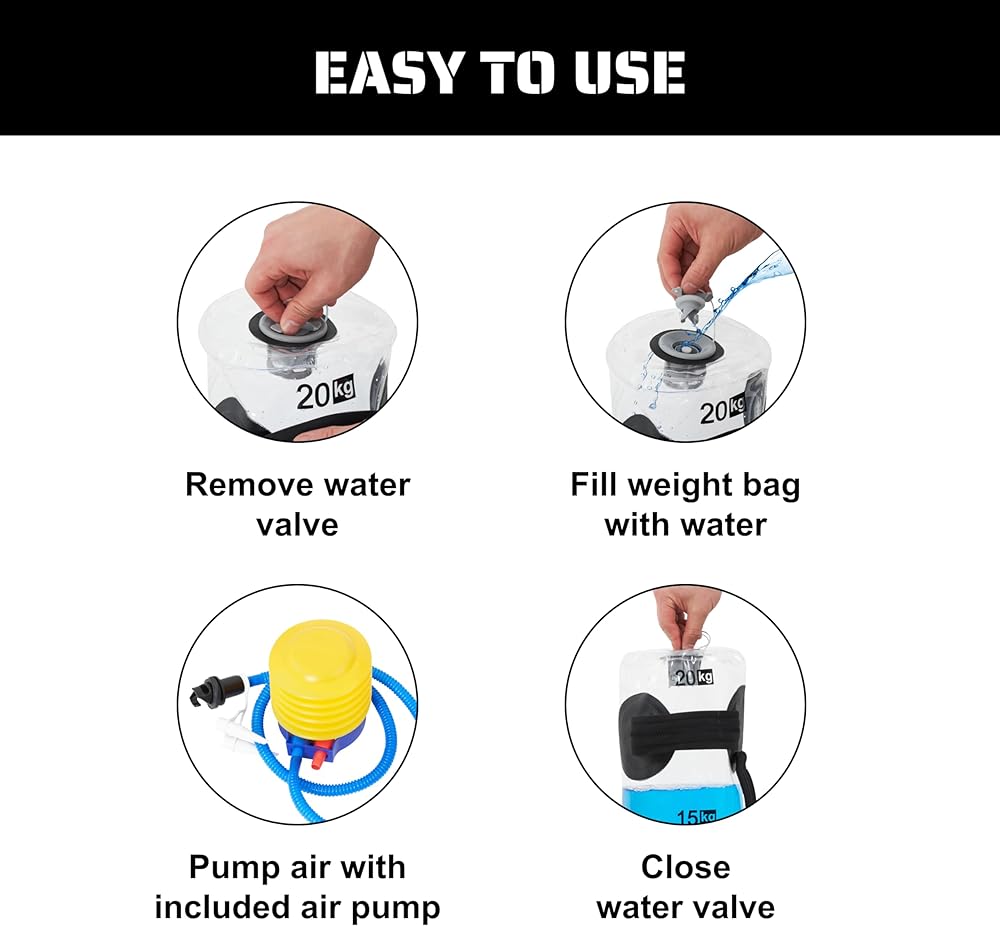 PORTABILITY AND CONVENIENCE: This water traction weight bag is your perfect workout companion. Its portability makes it an excellent choice for those who wish to exercise anywhere, at home or while traveling