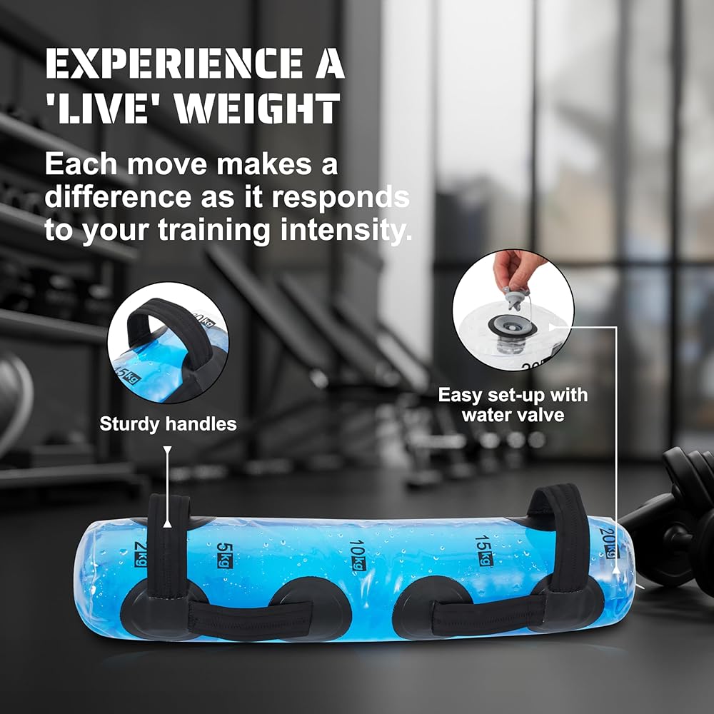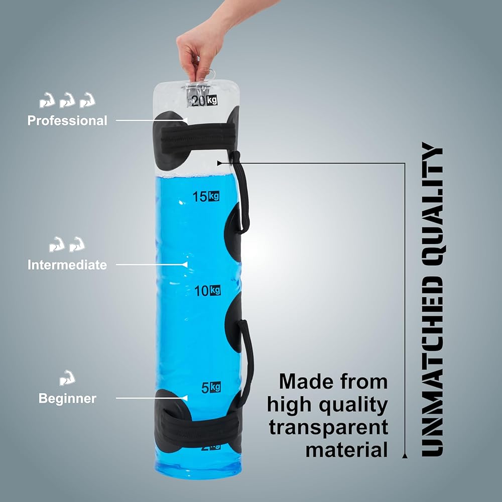 FULL-BODY ENGAGEMENT: Our aquabag provides dynamic water resistance for a full-body workout, engaging multiple muscle groups. This water weight bag improves endurance, power, and overall fitness level