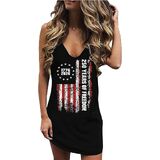 Features: American Flag Sleeveless Mini Dress, Sleeveless, Sexy Sleeveless Beach Sundress, Casual Fashion.