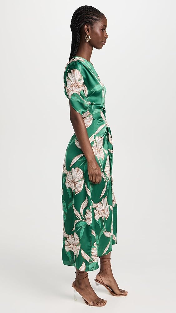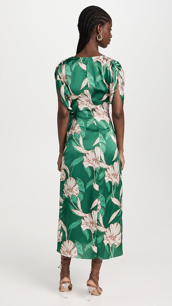 - Floral print , Short sleeves with ruched shoulders , Wrap silhouette with self-tie at waist