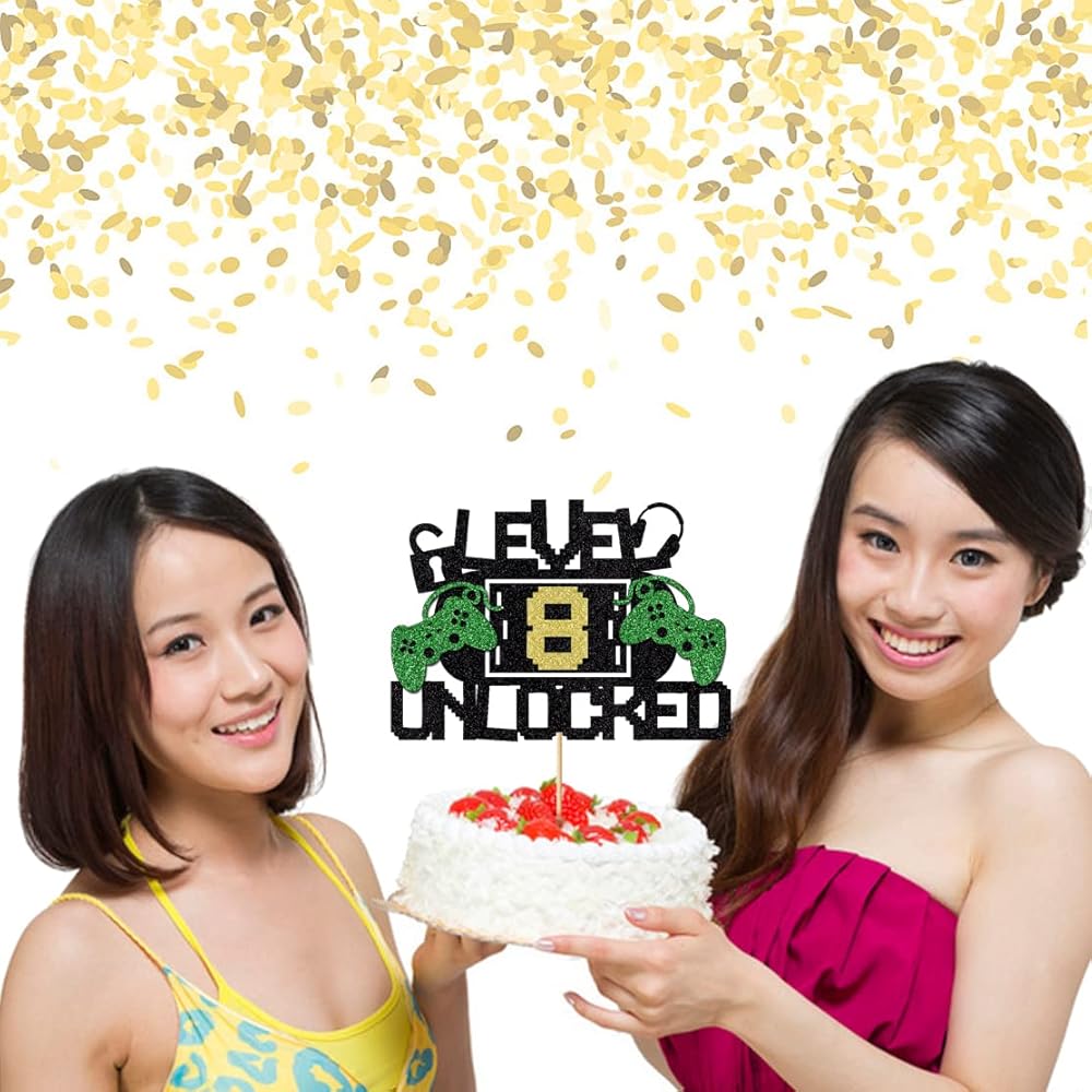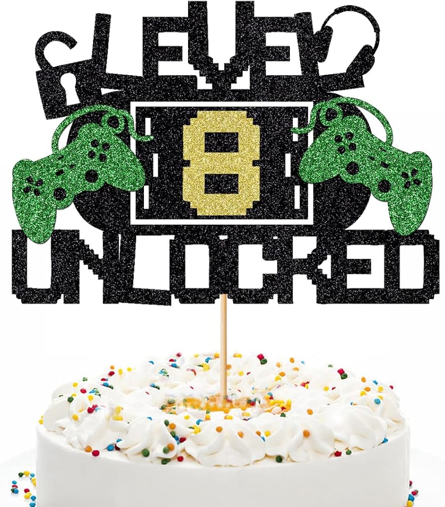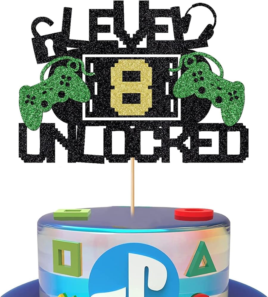 Level 8 Unlock Cake Toppers Video Game Cake Toppers Game Console Controllers Gaming Headsets Birthday Cake Toppers (8) Multicolor