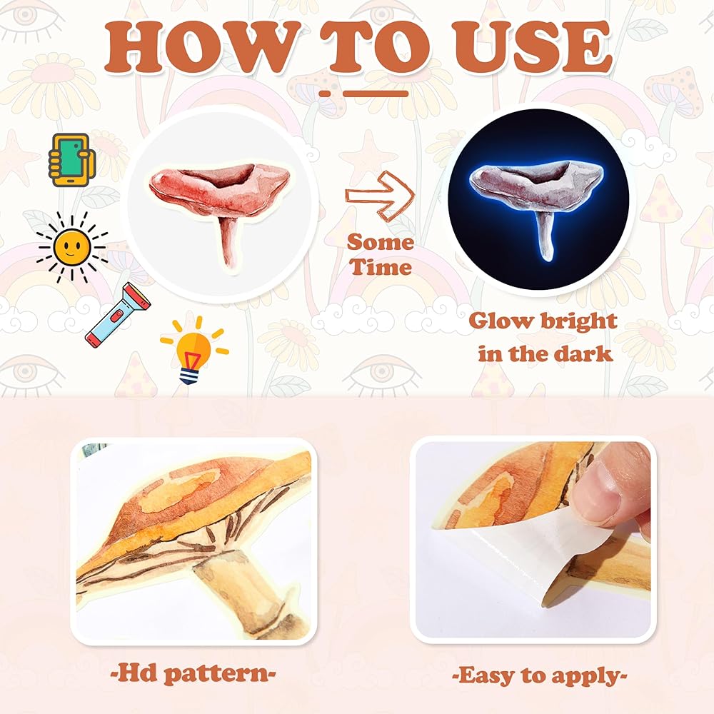 【Glow in the Dark】Let the stickers absorb light (sunlight/lamplight) at least 30 minutes, then it will glow in the dark. The longer it absorbs light, then to light up for up to longer.