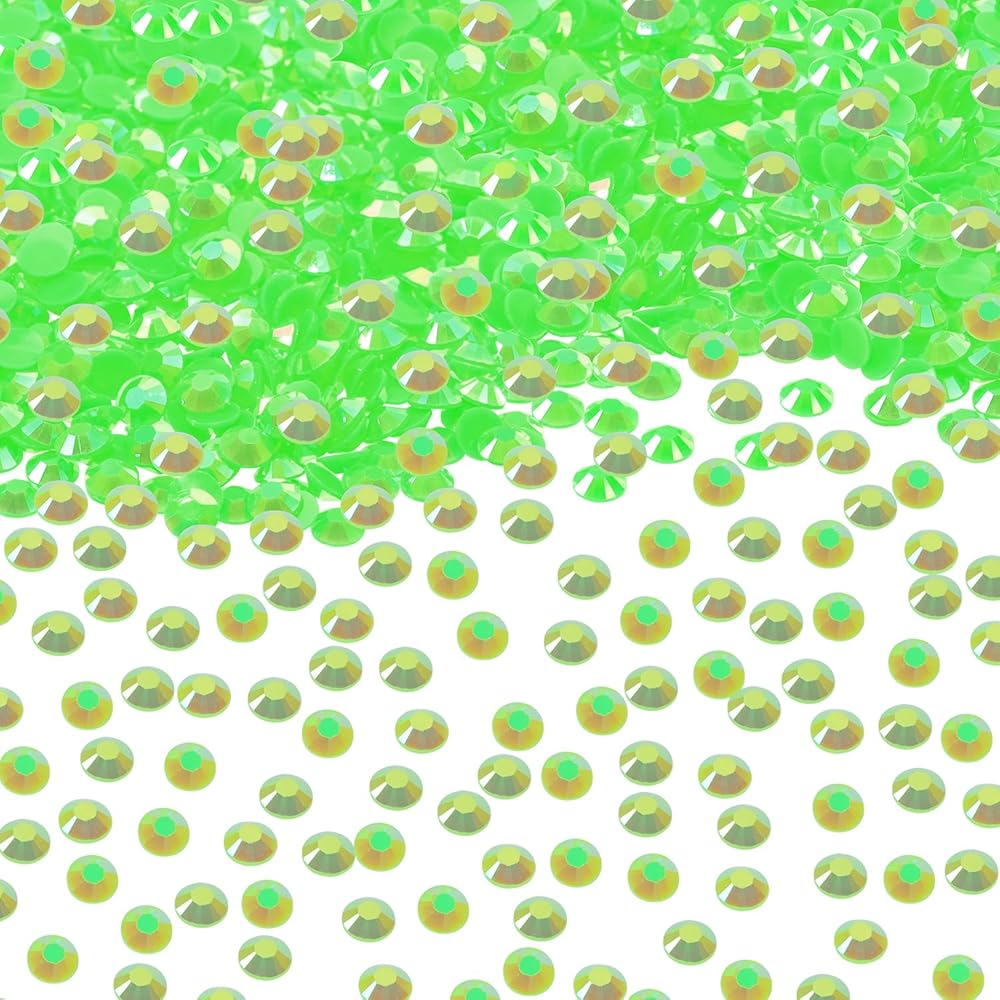 Resin Flatback Rhinestones Gemstone Beads Round Crystal Gems Diamond for Nail Art Project Bottle Cup Shoes Clothing Jewelry Card Making Craft Decoration, 2000PCS (4mm, Light Green AB)