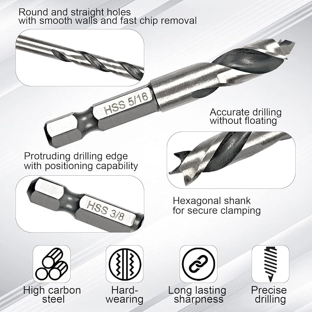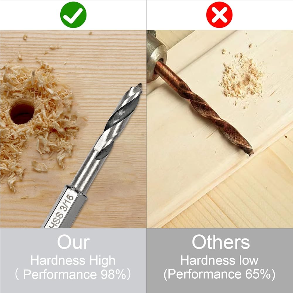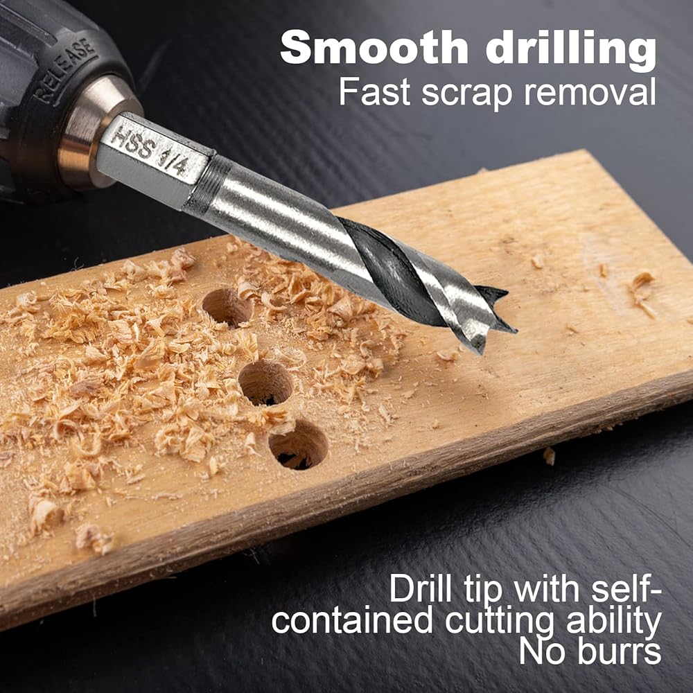【Tip design】The HSS spiral drill bits allow very accurate positioning of the hole. With precise edges that produce tear-out free holes.Each 1/4-inch hex shank is compatible with standard and quick-change chucks and drivers, providing versatility in drilling needs.